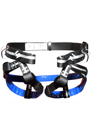 Especialmente reforzado y protegido por refuerzos tubulares de PVC, extremadamente resistentes y ajustable. Tiene un punto de fijación muy bajo. Cinturón: ajustable, cinta de 44 mm. Muslos y culera:  cinta de 26 mm. ajustables.