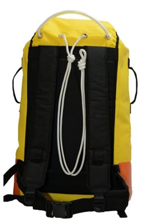 Mochila de transporte de gran capacidad. Tiene las ventajas de una mochila adaptada al entorno subterráneo y muy confortable tambien para el transporte por la montaña por su cinturón lumbar y forma ovalada.