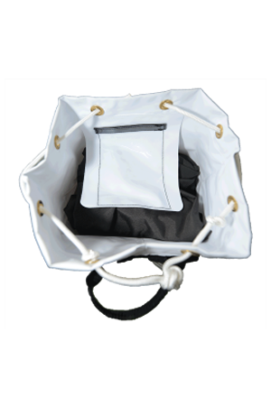 Esta saca tiene muchas ventajas innegables: una comodidad de transporte por sus cintas de hombro acolchadas y forma ovalada. Tiene 4 asas: 1 en la cabeza, 2 laterales, 1 en la parte inferior – un cordino de transporte vertical.